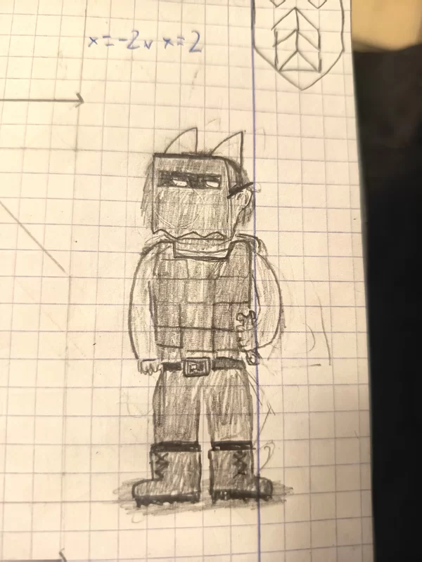 It was like supposed to be a human version of E.S., but it lowk sucks, especially that it was drawn in math class while teacher went out from the classroom for a minute and half of the class began to do the 67 😭😭