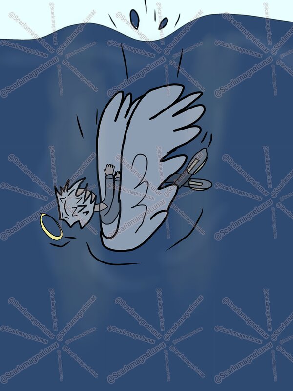 Arima an angel who was banished to earth stood on a cliff side with their lover a black haired girl. A sniper sat higher up on the cliff, gun trained on Arima. The sniper pulled the trigger bullet hitting Arima in the chest knocking him off the cliff, plunging into the water below unconscious.