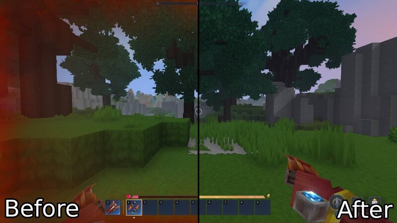 Now you can easily lock in and crush enemies when you are on low health, instead of being blinded by a big red screen effect.